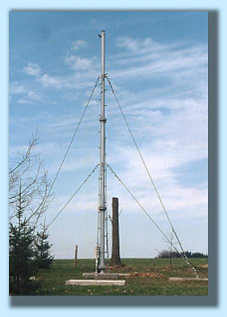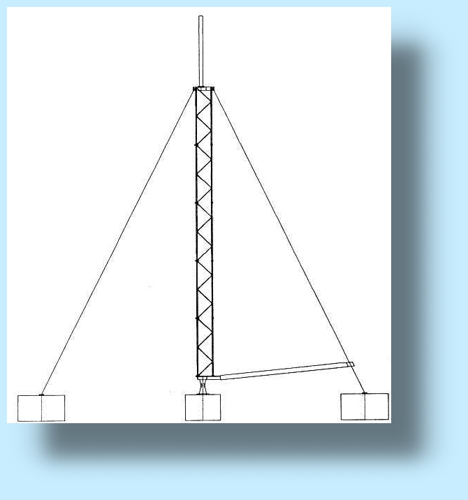 Die Stahlrohrmasten werden aus mehreren Segmenten miteinender verflanscht und mit mindestens 3 Stahlseilen im Winkel von 120° zueinander abgespannt. Das Kippgelenk gewährleistet ein sicheres Aufrichten des Mastes. Zubehör wie Seile, Schrauben, Spannschlösser usw. sind im Lieferumfang enthalten. Die Konstruktion ist komplett feuerverzinkt. Die Fundamente müssen entsprechend der Bodenverhältnisse in frostfreier Tiefe ausgeführt sein. Fertigung anderer Masten entsprechend Kundenwunsch auf Anfrage! | |